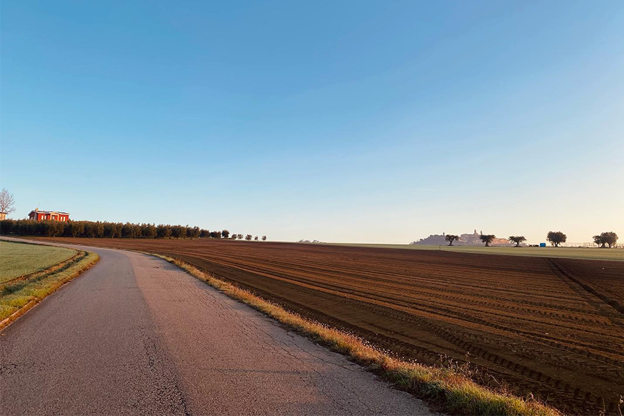 panorama della campagna circostante con il centro storico di Montecosaro