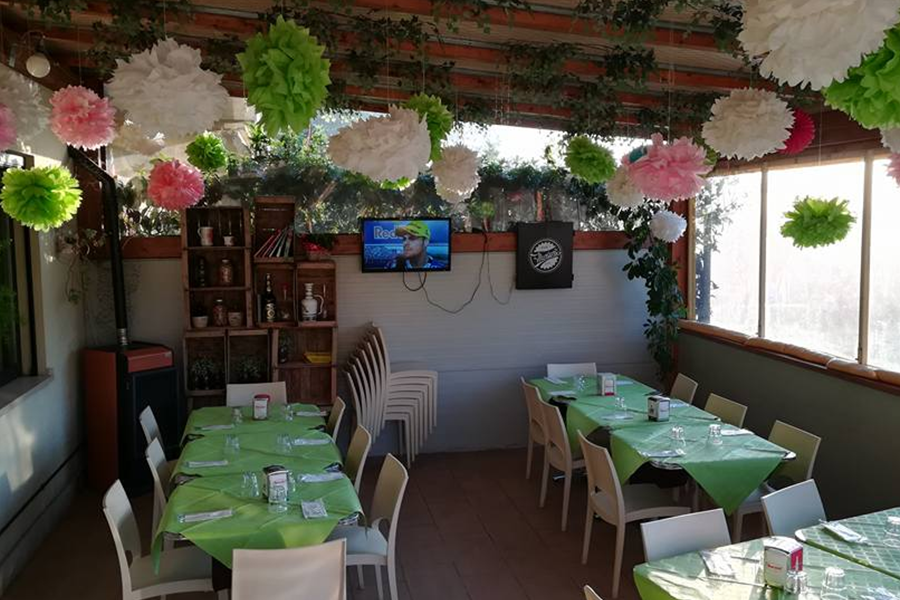 Locale accogliente con veranda, con spazio fumatori e parcheggio. Al mattino offrono servizio di panetteria.